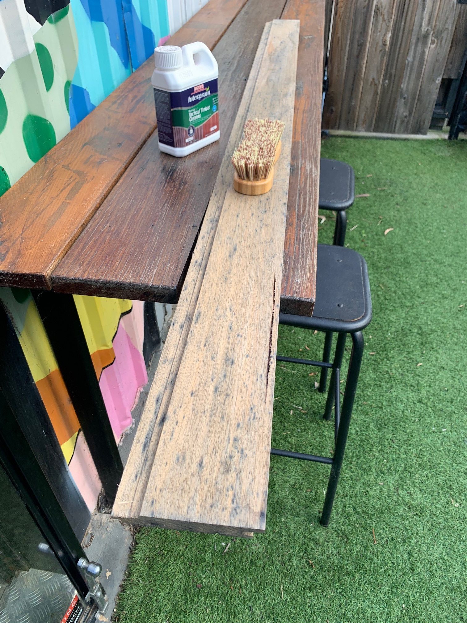 One of the most effective ways to clean your cladding is with a timber cleaning product such as Intergrain UltraPrep Timber Cleaner, which is designed to remove stubborn contaminants including dirt, stains, mould, tannins, oils and mildew. Specialist timber cleaning products can also help with removing any grey timber, which are old timber fibres that occur as it weathers over time.