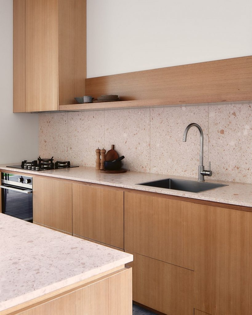 It’s hard to imagine a timber better suited to a palette of concrete and pale pink terrazzo than GoodWood Victorian ash. This winning combination is found throughout the space, drawing on clean lines and simplistic furniture to complete the brief.