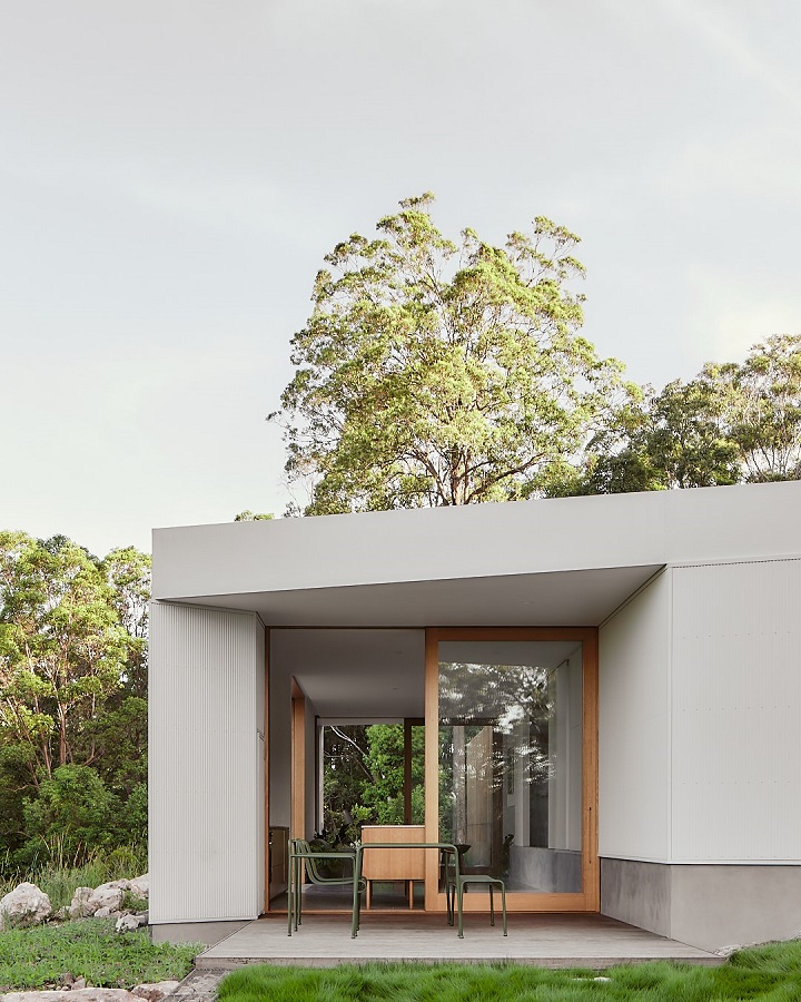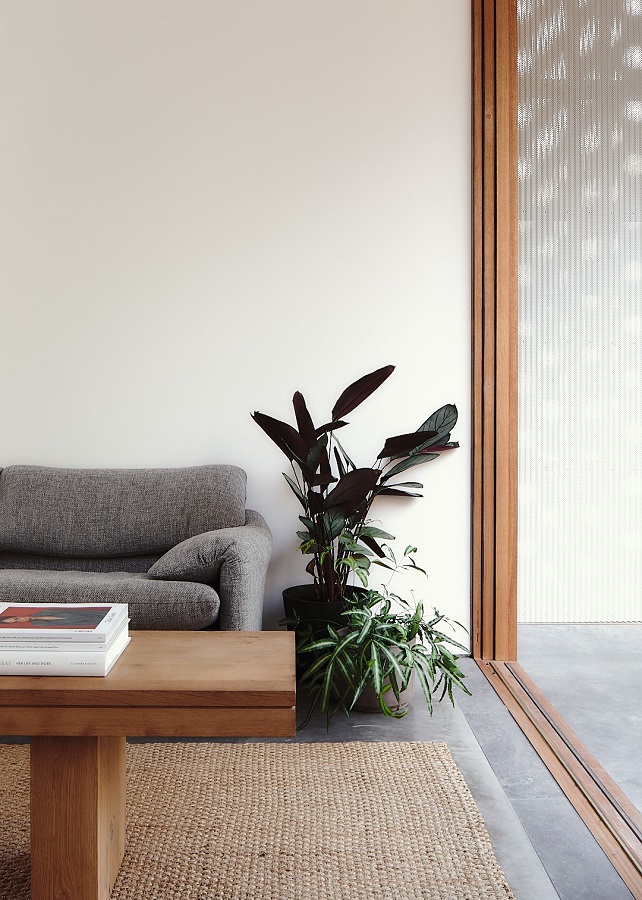 “the main reason we used Victorian ash is because it is a light coloured Australian timber that met the BAL-19 bushfire attack level requirement for the site. Its softness and warmth works beautifully with the project palette”
