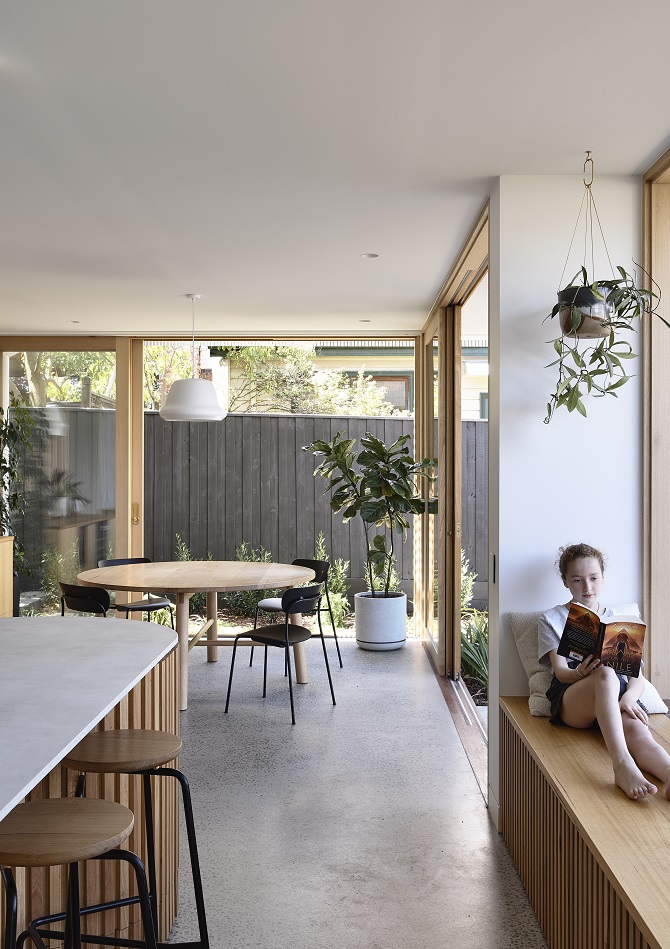 Brooke is a home located in the heart of Clifton Hill on Wurundjeri country, catering to the needs of a young family through a renovation and expansion of the original heritage building. The design focuses on incorporating natural light into the living spaces, seamlessly blending the interior with the surrounding garden, whilst also providing a sense of seclusion and protection in the private spaces.