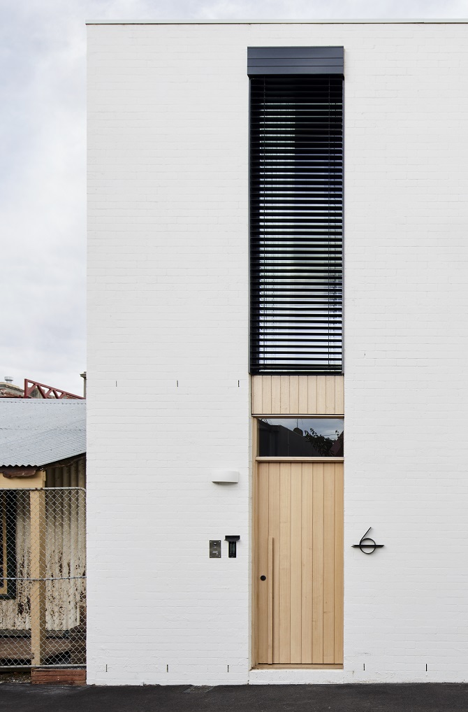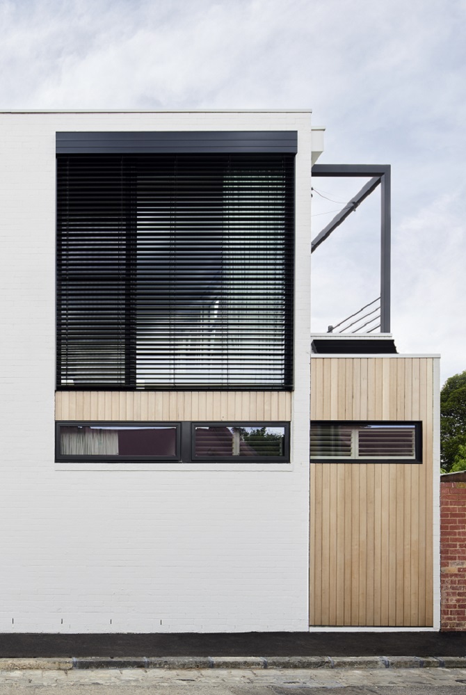 Located on a 120m2 block in South Melbourne’s Emerald Hill precinct, the iconic site once housed one of Melbourne’s historical ‘Iron Houses’ built during the gold rush times. The new build draws inspiration from the original Iron House by incorporating elements like similar steel window shapes and the use of robust materials.
