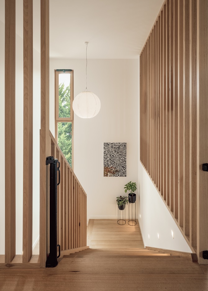 GoodWood Victorian ash was used for the windows and doors, along with the staircase and joinery to match. Sustainably sourced and manufactured at our world class facility, GoodWood Victorian ash is a hard-wearing, strong and visually stunning timber available in a variety of applications for a seamless design. Learn more about GoodWood here.