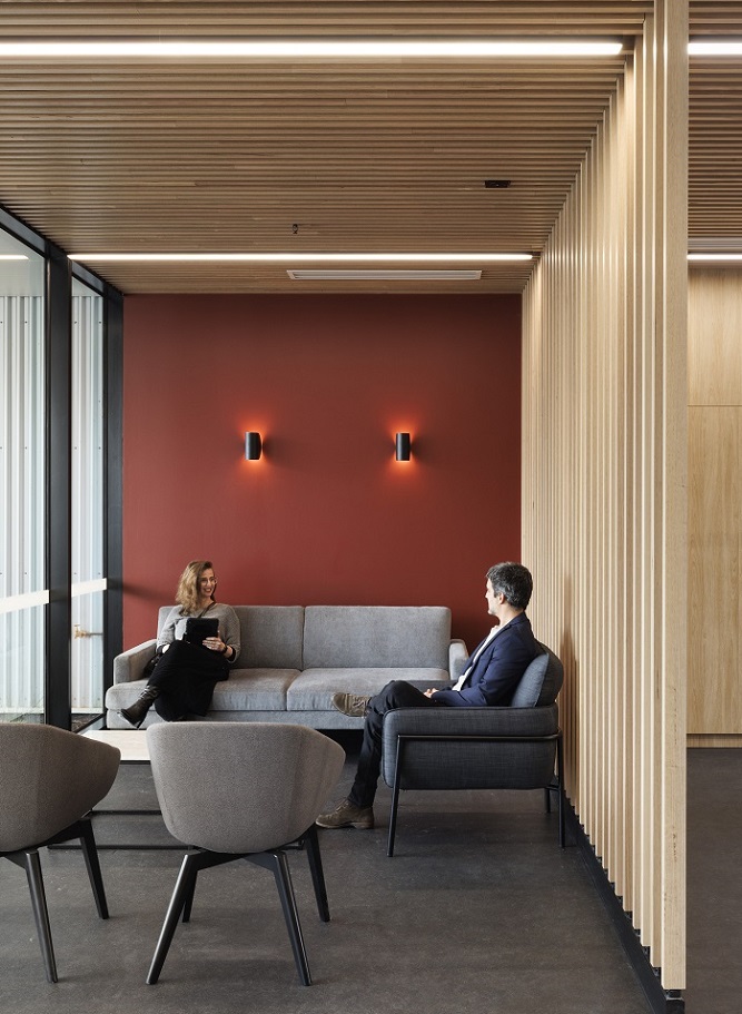 Accompanying the product engineering lab are breakout spaces to assist in the development of new ventures to test small-scale prototyping. These areas are separated by floor to ceiling Victorian ash battens, muted furniture and colourful art. The combination of materials is aimed at inspiring and encouraging innovation for the energetic teams using it.