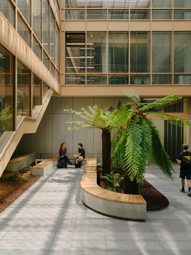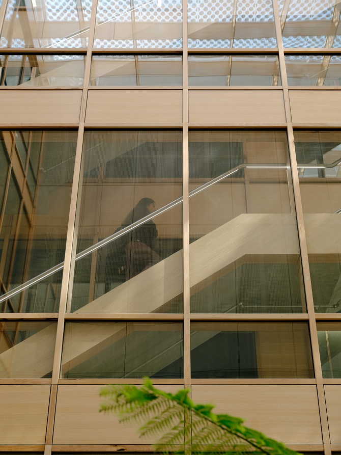 “CHES’ hybridised structure, combining laminated timber and concrete to reduce embedded carbon, is left exposed, allowing students to observe the tectonics of the architecture” – Fieldwork