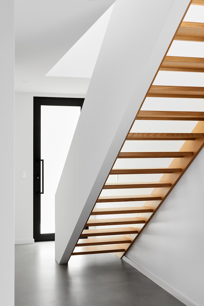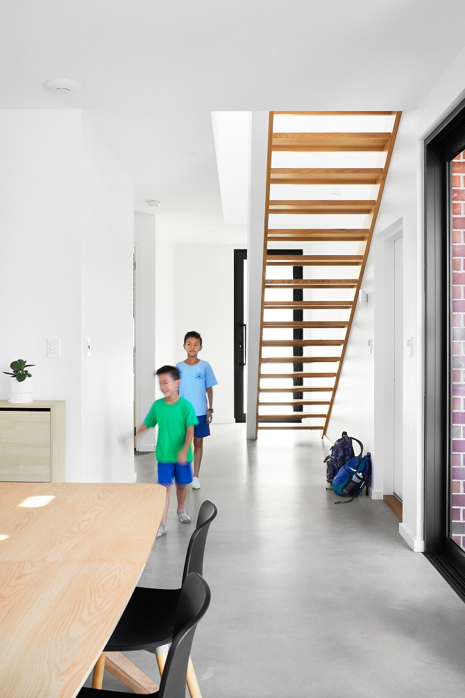 GoodWood Victorian ash was the material of choice for the feature open-rise staircase. GoodWood is commonly used for staircases for a number of reasons: